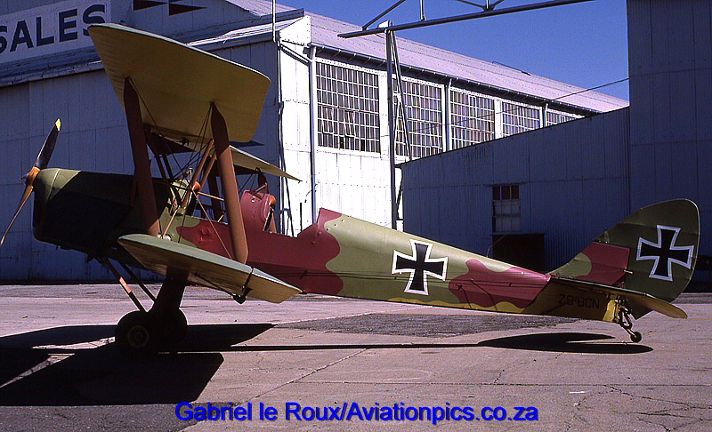 ZS-BCN Painted to represent a German aircraft as it appeared in the 1985 film King Solomon's Mines. At Rand Airport